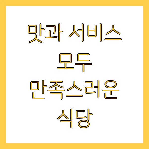 뭐니 뭐니 해도 식당 선택의 중요한 기준은 맛과 서비스겠죠? 이곳은 늘 깔끔한 매장 환경과 친절한 직원 서비스로 유명해요. ^^ 손님들은 맛 뿐만 아니라 쾌적한 환경과 직원들의 웃음까지 높이 평가해요. 주말이나 인기 시간대에 가면 대기 시간이 좀 있을 수 있지만, 피크 시간을 피하면 보다 여유롭게 식사를 즐기실 수 있어요.