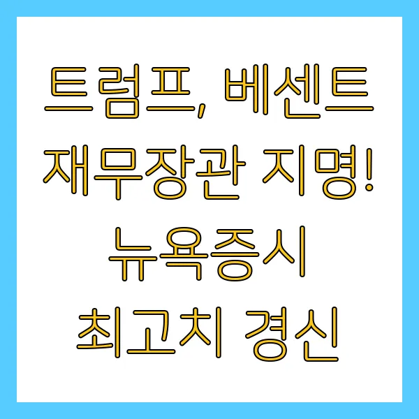뉴욕 증시, 베센트 지명에 환호하며 최고치 경신!