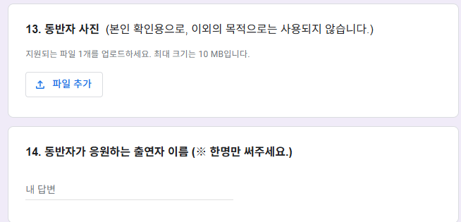 본인사진, 응원하는 출연자 이름을 작성합니다.