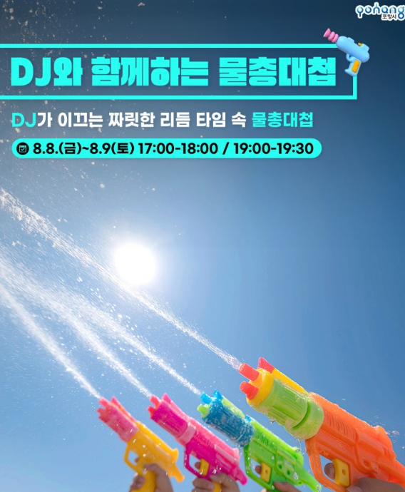 - 개인 물총 : 물총 대첩에 참여하려면 개인 물총을 지참하는 것이 좋습니다. 현장 구매 가능 여부는 미정이니 사전에 준비 바랍니다.