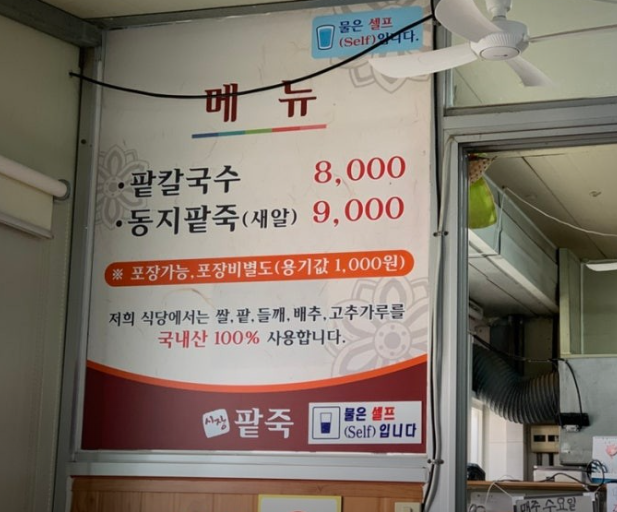 팥칼국수와 새알이 든 동지팥죽 2가지 메뉴만 판매하십니다.