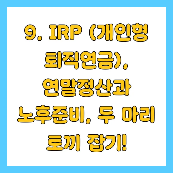 9. IRP (개인형 퇴직연금), 연말정산과 노후준비, 두 마리 토끼 잡기!