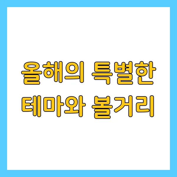 개막식과 특별가수 초청 공연부터 인디밴드 공연, 마술쇼, 군악대 연주, 태권도 시범까지! 관람객 모두가 함께하는 신나는 무대가 여러분을 기다리고 있어요!