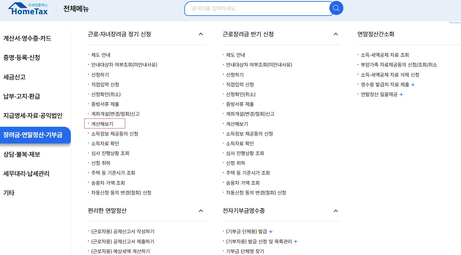국세청 홈택스의 '모의계산' 메뉴를 활용하면 됩니다
