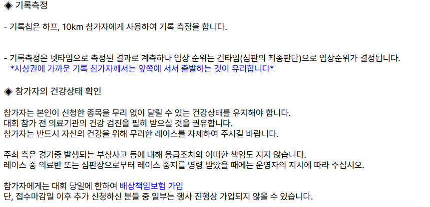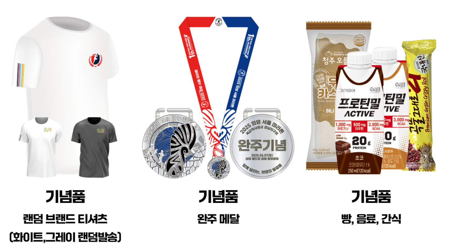 참가자들에게는 기념 티셔츠, 완주 메달, (하프/10km 참가자에 한함) 기록증,