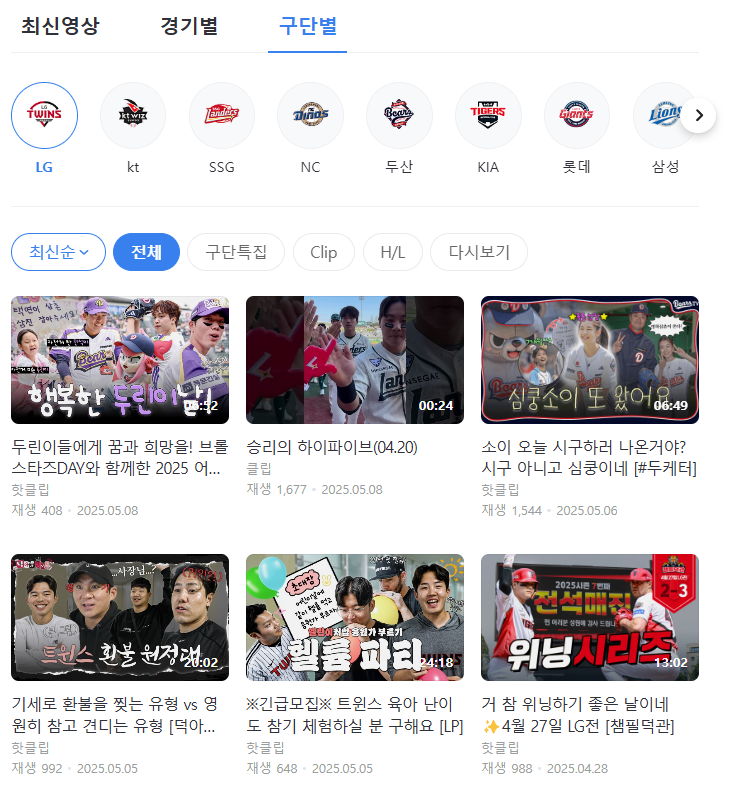 각 구단의 채널은 팬들에게 다양한 콘텐츠를 제공합니다.