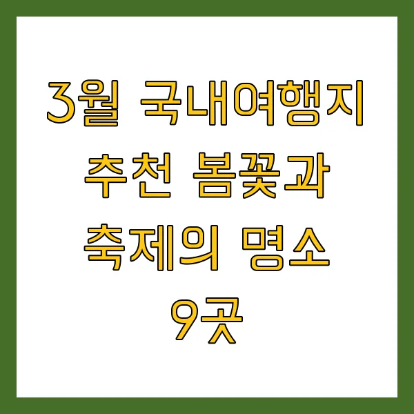 결론적으로 , 3월의 국내 여행지들은 각 지역의 꽃들과 축제로 가득 채워져 있습니다 .