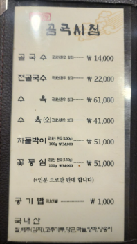 대표메뉴인 전골국수, 곰국수, 수육을 비롯해서