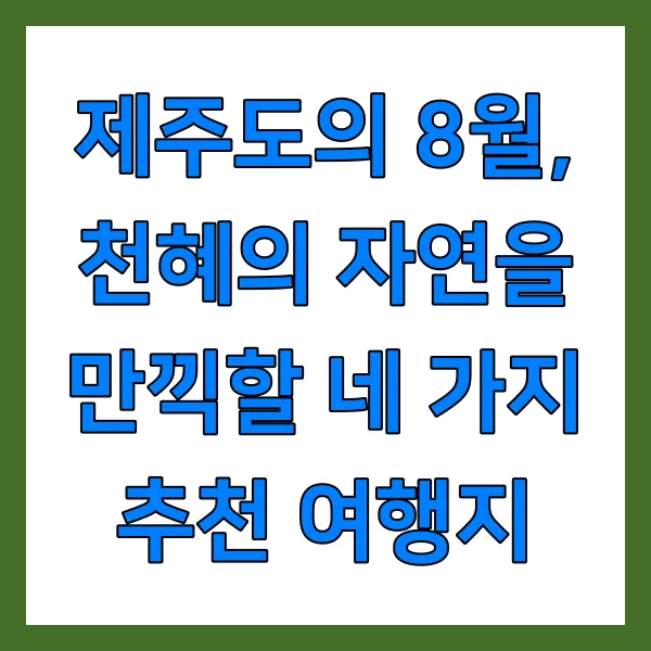 대한민국의 보석, 제주도는 사계절 내내 다채로운 아름다움을 간직하고 있습니다. 특히 8월의 제주는 그 풍성한 색감과 신선한 바람으로 방문객들을 매료시킵니다. 이번 포스팅에서는 제주에서 8월에 꼭 방문해야 할 네 가지 추천 여행지를 소개하겠습니다. 이곳들은 도심의 더위로부터 탈출하여 자연과 함께 여유로운 시간을 보낼 수 있는 최적의 장소입니다.